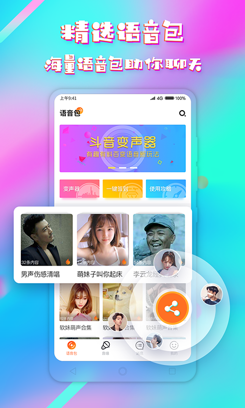 斗音变声器是一款全新的游戏语音打包工具。 使用抖音变声器APP可以让你在这里轻松变声,还有更多有趣好玩的语音包可以在游戏和聊天中使用。 如果你愿意,你可以改变各种声音。 快来本站下载体验吧。