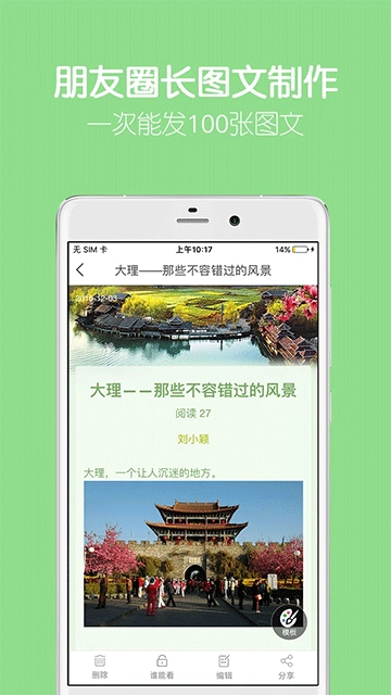 3.让朋友圈一次发100张图文。版面精美,是文章写作工具。