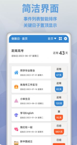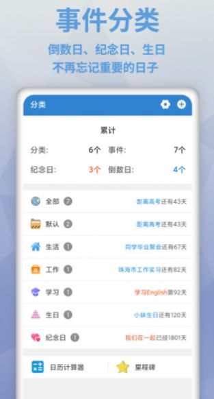 2、支持自定义倒数日与纪念日事件,让用户用心记录每个重要时刻。