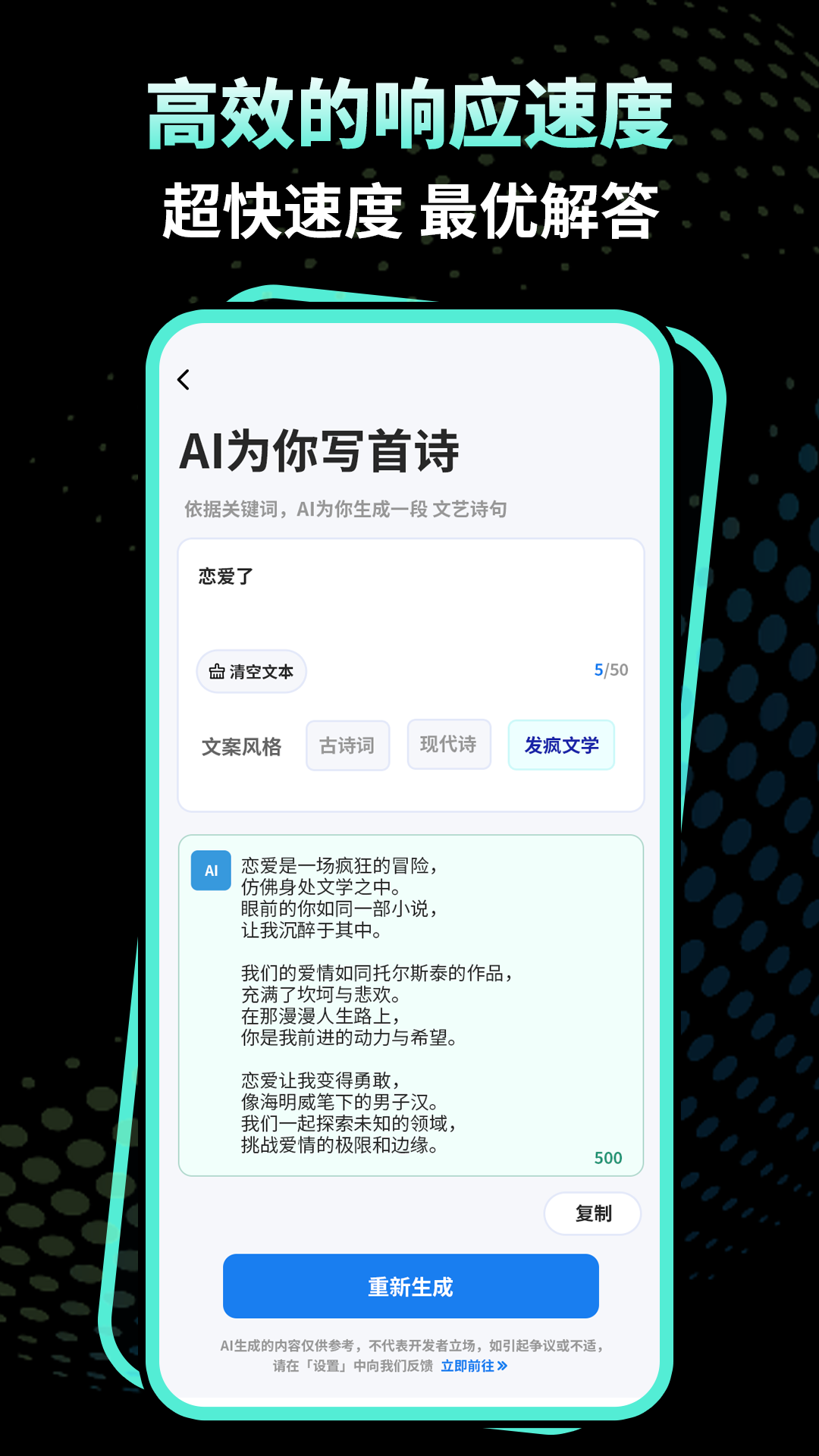 4.实用性,直接将生成的文案复制到剪贴板或分享到社交媒体上。