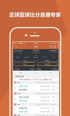 2、并提供足球和篮球赛事的实时直播数据,观看直播,搜索球队,查看历史,精致专业。