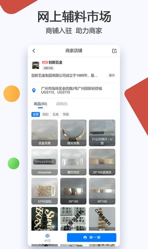 2、同时,我们还提供辅料资讯、市场行情、企业名片等功能,让您实时掌握辅料市场动态,快速定位目标客户,并展示自己的企业形象。