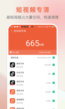 1、能够自动识别并清理手机中不常用的软件及数据。