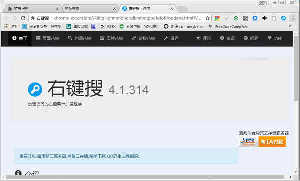 1、本扩展简单实用没有任何花哨的东西,扩展右键菜单,超过300种功能,选择文字后右键显示搜索菜单或右键图片显示图片搜索。