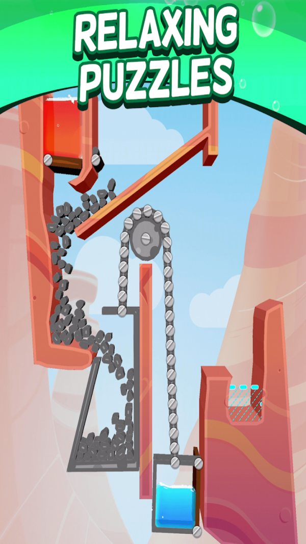 2、你需要克服障碍,帮助水顺利地到达底部。在完成每个关卡的水目标后,你将获得大量的奖励。