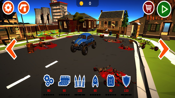 4、玩家可以通过汽车碰撞或其他武器杀死僵尸,杀死僵尸后可以获得金币购买道具。