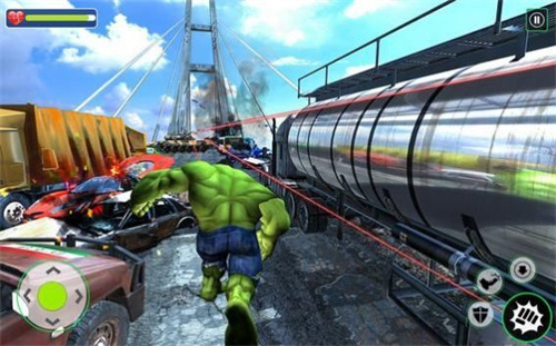 緑巨人并不是无敌的,游戏上方的血条消耗完了游戏就失败了。