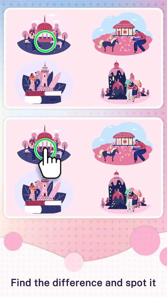 3、你应该在有限的时间内找到所有的差异。这可以让你在游戏中以更高的分数更快地通过关卡。