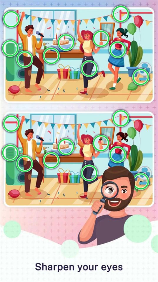 差异找出所有这款游戏比较考验玩家的观察力和注意力,需要有一定的耐心,仔细观察图片中的不同之处,每个关卡都有着不同的图片,能够给玩家带来无限的新鲜感,简单易上手的游戏规则,多样化的游戏场景,适合所有玩家前来体验。