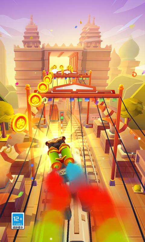 3、跨越各种前方列车和障碍,同时还需要跳上列车顶部,使用滑板躲避;