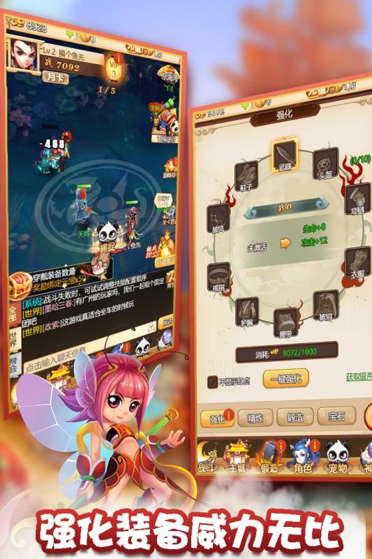 在游戏过程中,玩家可以抓捕各类宠物,它们可能是高高在上的天神,可能是流浪在外的山精野怪,也可能是镇压诸天的上古神兽。除了宠物还有美轮美奂的天女和仙君,漂亮是她们的代名词,绚丽四射的技能才能她们真正美的体现,她们将陪伴你一起走完这条取经路。除了这些,还有各色坐骑、炫酷翅膀、强力装备;还有兄弟一起努力建设的帮会地图,一起血战的帮会战,帮会妖怪,一起协助的帮会副本。更具趣味的宠物出战搭配,不同宠物不同技能不同天女和仙君,策略智力将在这里完美的体现,让你看到你的不凡之处。