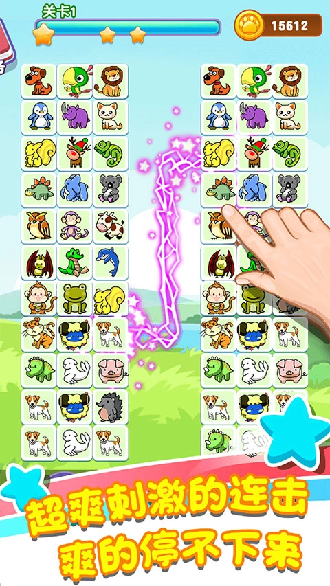 1. 经典的连连看模式之中,消除两个相近的大动物块,注意消除之后的连接线不能超过两个角。