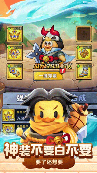 66小鸭鸭九游版是一款Q萌的RGL风格冒险生存手游。在宁静的鸭村中,突然出现了一群异形怪物,破坏了小鸭子部落的平静生活。作为鸭战士,玩家需要组建守卫联盟,奋起反抗,拿起武器,使用强力技能,打造神话装备和组合觉醒技能,躲避怪物的群攻并进行反击,与其他幸存者一起战胜危险的敌人,夺回鸭村的宁静。
