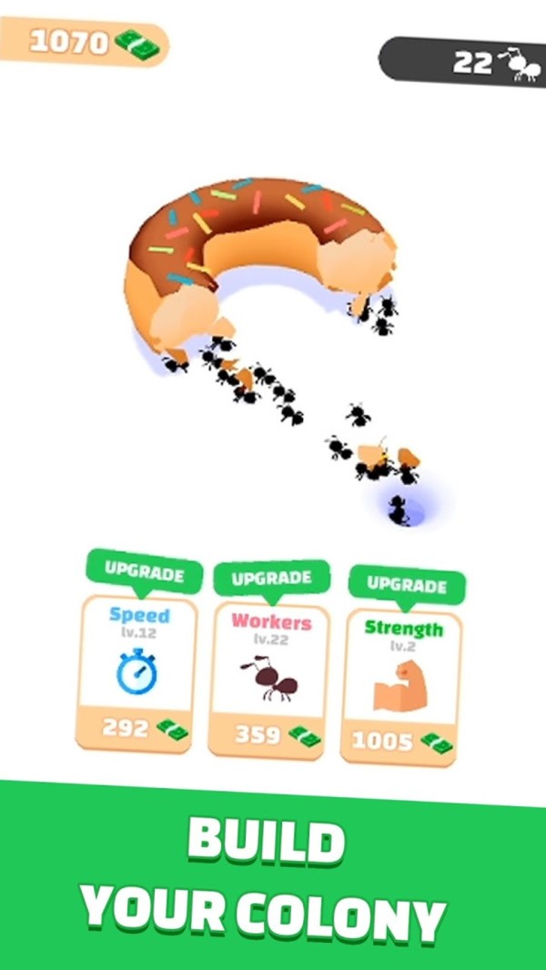 1、命令你的蚁群不断壮大,让它们吃掉其他虫子,热狗,甚至飞机。