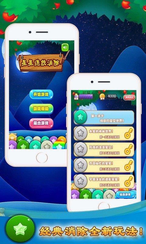 开心星星连线消消乐,非常具有挑战性的休闲的单机小游戏,切水果的手感变成了连线的连线星星,水果连连看的别样玩法!经典好玩的益智游戏。类似消灭星星游戏的风格,开心消消乐游戏的手感,消灭星星高手,开心消消乐玩家一定会喜欢上他的! 开心星星连线消消乐创新的连连看连线游戏. 开心星星连线消消乐是一款以星星为主题设计的一款非常好玩的休闲游戏,界面清新,音乐优美. 水果连连看,全平台超萌连连看连线消消乐游戏,让我们一起来开心星星连线消消乐消灭星星吧!