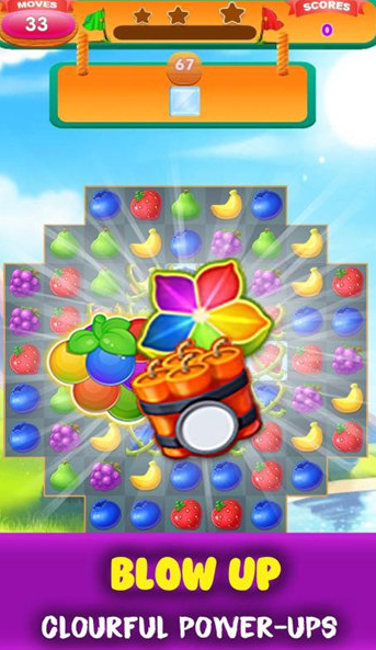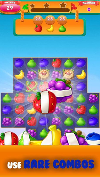 1、消除操作非常的简单,玩家只需要用手指滑动水果移动位置,操作比较的方便;