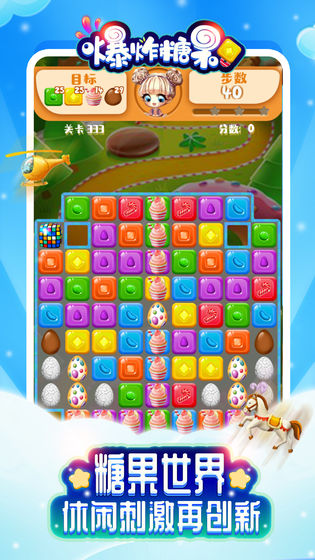 1.移动甜美的糖果,让三个一样的糖果在一条直线上,就可以收集和粉碎它们。
