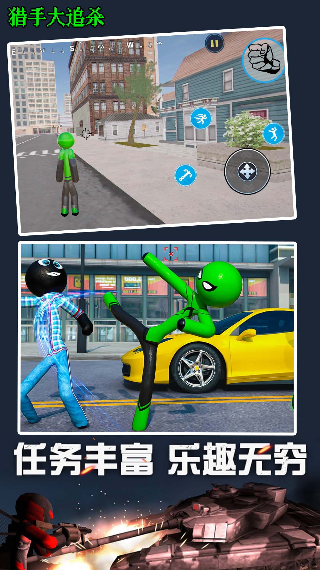 猎手大追杀是一款蜘蛛超级英雄城市动作冒险的游戏,玩家需要肩负起守护城市安全的责任,并且借助强力绳索在其中帮助自己的角色,完成快速的飞行和移动,游戏玩法会结合极高自由度,呈现给玩家们最为刺激的城市冒险过程,极简的火柴人角色建模,也能带给玩家更多惊喜的体验。