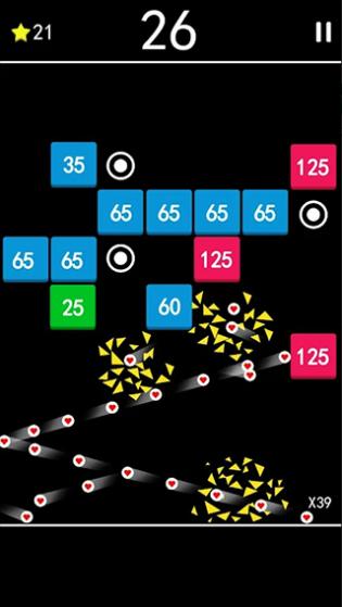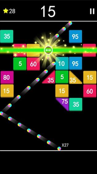 弹珠打砖块作是一款特别有趣和具有挑战性的休闲消除类游戏。玩家可以连续射击多个弹珠,击中屏幕上的彩色方块,直接切换到无尽的挑战模式。借助反射原理,他们可以成功消除对应颜色的方块。盒子。