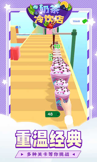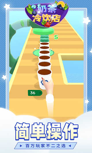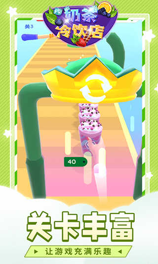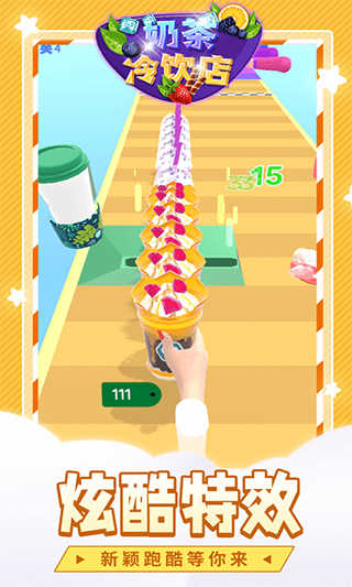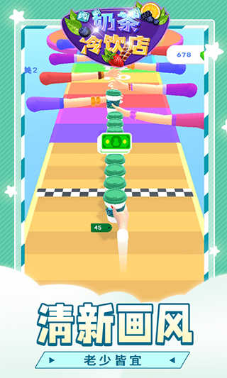 4.不同的奶茶会给你带来不同的闯关体验,你要边跑酷边堆叠制作奶茶,成功到达终点!