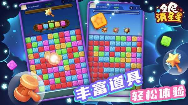全民消星星是一款休闲消除类游戏,在游戏中玩家需要完成各种不同的消除任务,大量新奇的挑战等你来完成,不同的关卡拥有不同的消除挑战难度,选择合适的道具帮助自己顺利的完成不同的挑战,精美的游戏画面,超多关卡的选择让所有玩家都可以享受更多不同的游戏玩法,喜欢的玩家赶紧下载挑战吧。