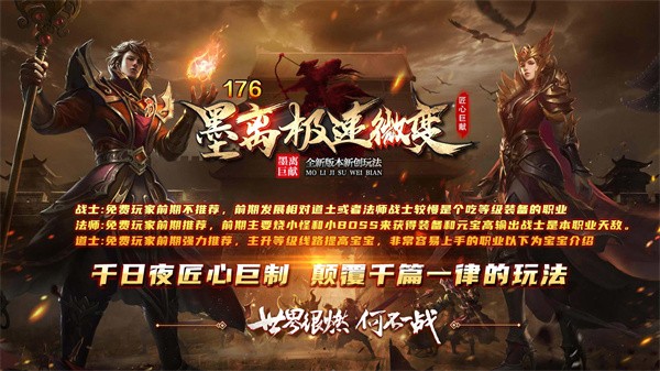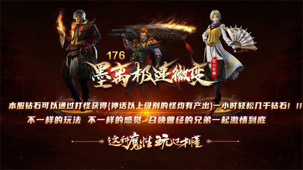 墨离176极速微变是一款非常经典的墨离系列微变版热血传奇手游,在新开的墨离176极速微变游戏中,为玩家带来了更多创新性地传奇冒险玩法。玩家可以选择不同职业进行冒险,如战士、法师和道士等。游戏中还加入了独特的宠物系统,玩家可以培养不同种类的宠物来辅助战斗,享受畅爽的战斗快感。