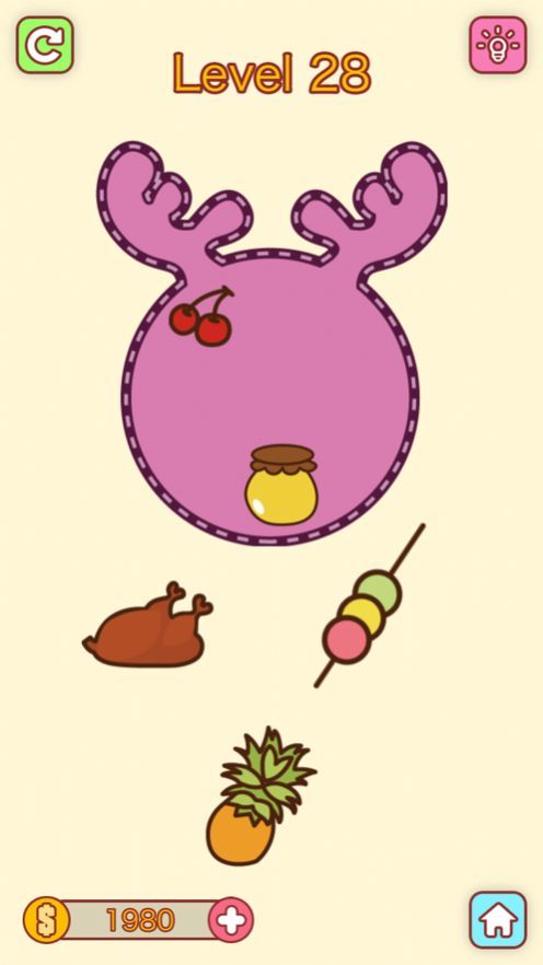 游戏有着最简单的规则,只需将关卡准备的食物放入盘中,不要落下一份食物就能过关。