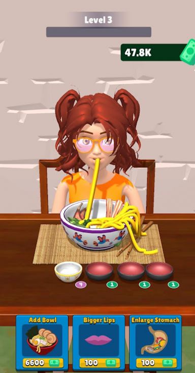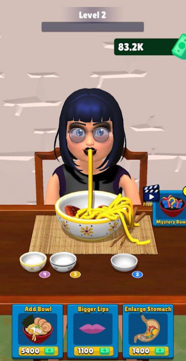 吃面条大师(Mukbang Clicker)是一款有趣的挑战游戏,玩家需要吃面才能赢得比赛,并挑战各种吃面困难。游戏中有各种类型和口味的面条可供选择。玩家需要根据游戏要求选择合适的面条类型和口味,并在规定时间内吃完面条才能赢得游戏。每个游戏都有不同的规则和难度等级。有些游戏要求玩家尽可能多地吃完面条,而另一些游戏则要求玩家在指定时间内吃完一定量的面条。有些比赛要求玩家在规定时间内吃完特定长度的面条。