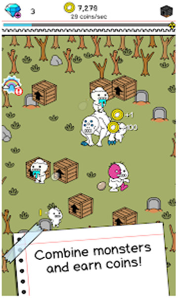 1、为了让它们成长,你需要通过点击和合成它们来让它们进化;