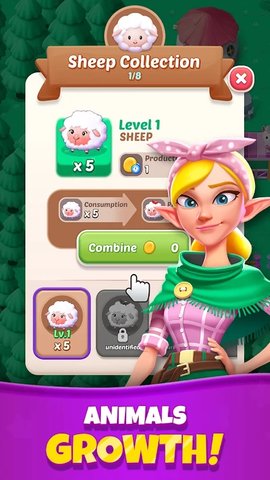 2、玩家可以通过合并农场动物来解锁新的动物品种。