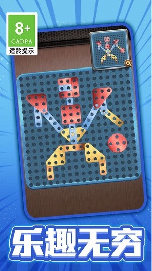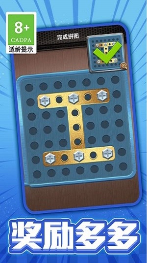 打螺丝拼图是一款创新的拼图游戏,玩家需要通过旋转和移动螺丝来拼出完整的图案。每个关卡都有不同的难度等级,需要玩家耐心思考和灵活操作才能完成。