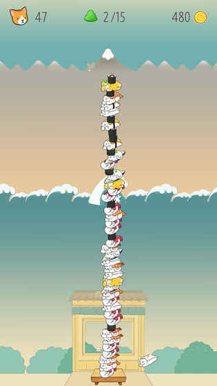一只一只的寿司将会以猫的形态出现,不同的猫咪寿司代表不同的口味,玩家需要将这些寿司叠成一个高塔,高度越高,整体的分数就会越高!