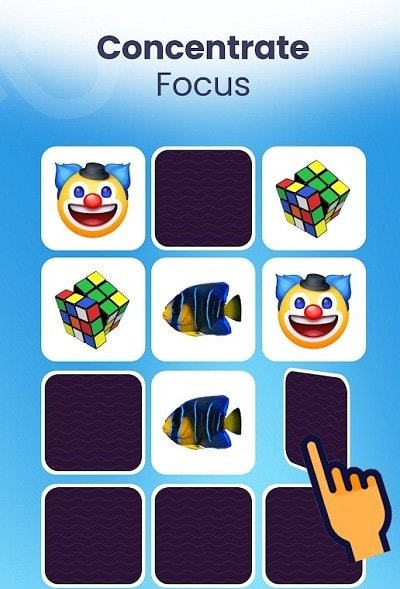 集中记忆是一款专门为了锻炼集中能力以及记忆力能力打造的游戏,在集中记忆游戏里,用户可以通过各种游戏模式以及场景,来磨炼,并且在集中记忆游戏中可以以每日闯关挑战的方式来获得更多道具,当遇到困难时可以使用道具。