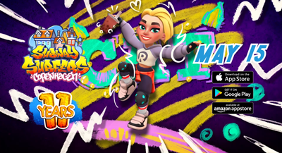 地铁跑酷国际服3.12.0版是一款非常好玩的休闲跑酷游戏,最新版本全球旅行来到哥本哈根,庆祝游戏十一周年给大家带来许多福利活动,大家快来下载看看吧。