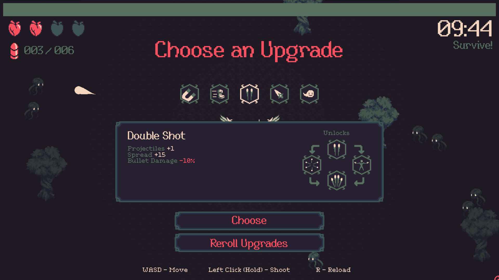 HP:4点击右键,将剩余弹药向随机方向倾泻。