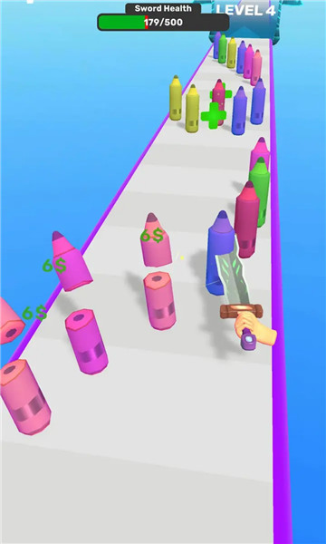 宝剑熔合下载安装手机版是一款跑酷游戏。游戏结合了合成与跑酷的玩法,让玩家在享受刺激的跑酷体验的同时,还能不断融合刀剑打造终极刀剑,穿越重重障碍。终于到达终点。在游戏中,玩家需要控制一名勇士,使用宝剑穿越各种障碍。在跑酷旅途中,玩家收集的资源用于不断升级剑融合,以增加攻击力和速度。