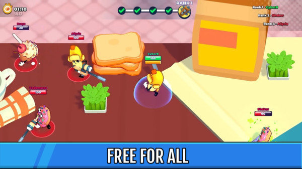 1、玩家需要在游戏中协调强大的食物军队并与敌人战斗,收集资源并升级自己的基地。