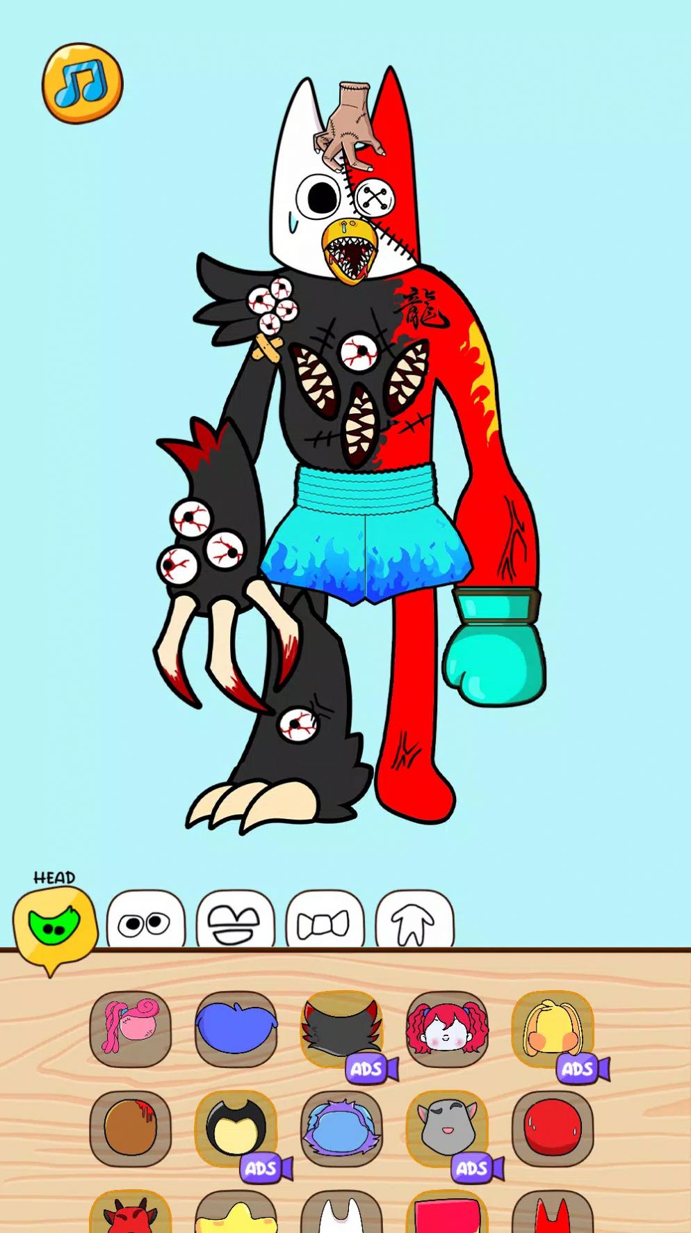 3、不同的部件可以进行合成,创造出更多种类的怪物样式和配饰,风格迥异;