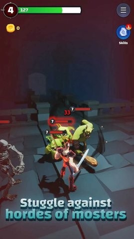 3、你可以探索地牢,打败各种各样的怪物,寻找珍贵的宝藏和道具,升级你的角色和技能。