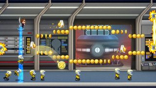 玩家在这款游戏中控制游戏主角并利用其背上的Jetpack在逃亡的路上避开各种障碍以及消灭敌人。不过这个Jetpack的动力不是传统的燃料动力,而是利用不断发射子弹来作为上升飞行动力。各种层出不穷的防御电网、不断袭来的飞弹、强力的激光栅栏,炫丽的画面,游戏的配乐风格有些另类,非常给力。
