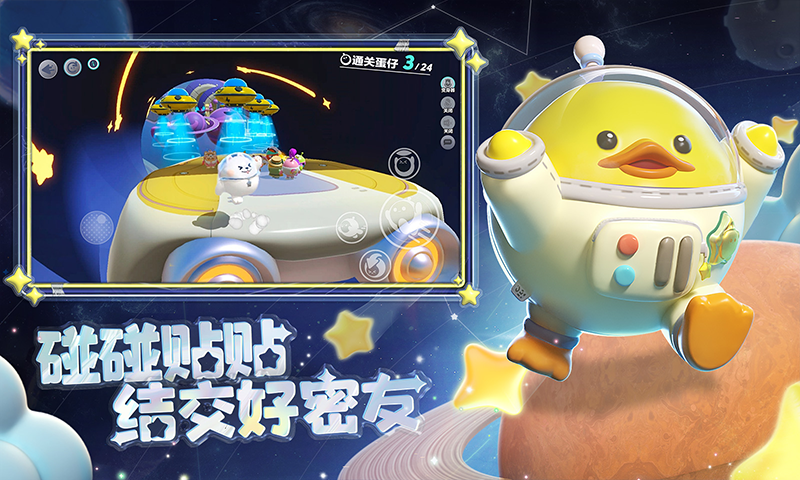 【蛋仔派对太空奇遇】蛋仔派对太空奇遇是一款采用卡通画风打造的趣味冒险闯关游戏,蛋仔派对太空奇遇游戏支持多人联机游玩,玩家可以随时随地邀请好友一起畅玩蛋仔派对太空奇遇这款游戏,游戏新增太空奇遇模式,给玩家精心设计了很多太空主题的关卡,玩家需要操控Q萌可爱的蛋仔在太空关卡中展开精彩刺激的冒险闯关之旅。