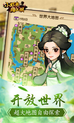 1、精彩有趣的江湖武侠游戏背景,玩家在游戏中可以在这个江湖世界中自由地来冒险。