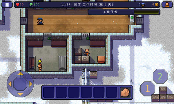 2、想要从监狱里逃走,必须要面对一切的困难与危险,用你的智慧解锁道具,让这些道具为你逃离监狱作出贡献,哪怕是一个小小的选择,就会得到一个截然不同的结果,你在监狱里可以靠给别人干活赚取一定的奖励,用来购买武器和服装等等。