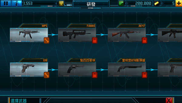 在执行任务的过程中我们有一定的几率可以捡到科技点以及金钱。金钱是用来购买直升机、队员以及武器的。升级武器就需要使用到科技点了。当现在的武器升级满之后,你就可以解锁下一把武器了。当然玩家也可以使用金钱购买装备包裹以及其他型号的直升机还有超级战士。