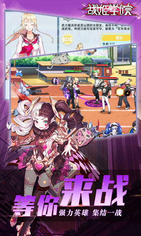 战姬学院是一款画风纯正的二次元英雄大对战竞技手游,组建伟大的美少女战斗来拯救这个世界的黑暗,通过了自由的养成方式来完成新角色的培养,各种造型的美女敬请你的征服,多个层次的互动方式能够让你的美女和你一起战斗,只有将正义感无尽的传播才能够抵御邪恶的入侵,数百位萌娘在线等待你的邀请,各种不可思议的冒险并存。
