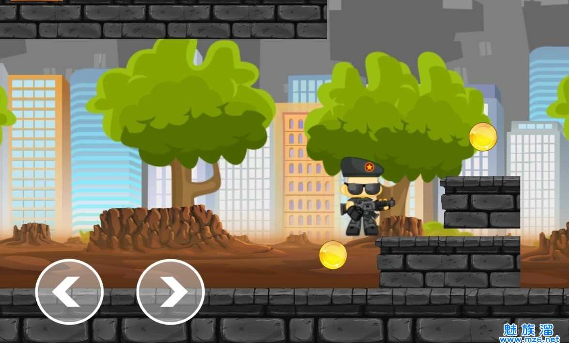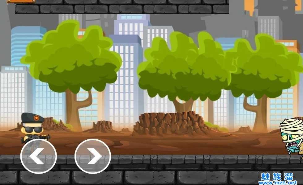 沙漠兵打僵尸游戏是一款横版闯关游戏。我们将扮演一名特警在城市之中冒险前进,在我们前进的过程中会遭遇非常多的僵尸敌人,我们可以选择射击击败僵尸,也能够通过跳跃越过僵尸,我们的武器可以通过收集道具来增强起威力,不过子弹的数量是有限制的,我们必须更加合理的使用才行哦!