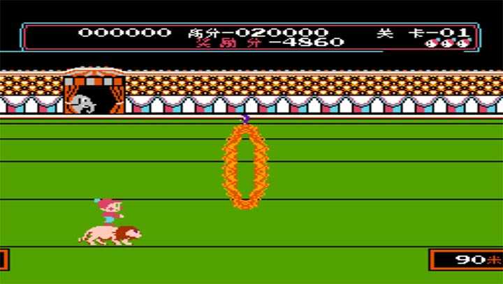 跳火圈:游戏的第一关没什么难度,要注意把握住跳跃尺度,尤其是火圈和下面的火重叠起来才可以跳跃,控制一下距离即可。