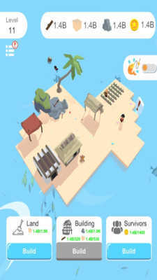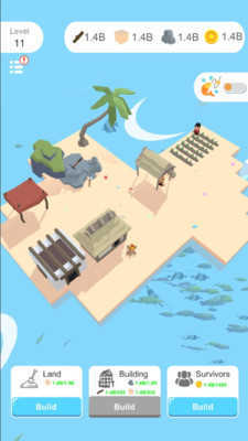 一开始只有一个小海滩。您需要不断收集资源,逐步建造您的岛屿,篝火晚会,建造建筑物,最后建造一座宏伟的岛屿。