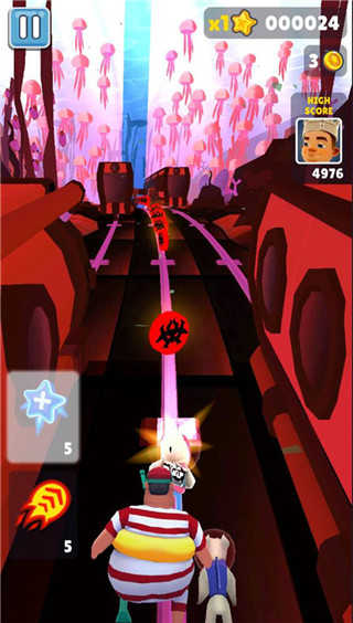 2、警察不再是身着警服,而是穿着一套沙滩定制服,跑图来到了海底,火车也是改成了暗红色;