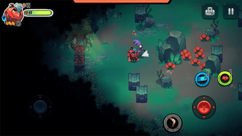 4、第三关,攻击红色果实会掉落果实炸弹。小心不要靠近疼痛的部位。进入第四层的蝙蝠会飞过来咬你,因为地图有点黑。注意被咬,注意躲避。